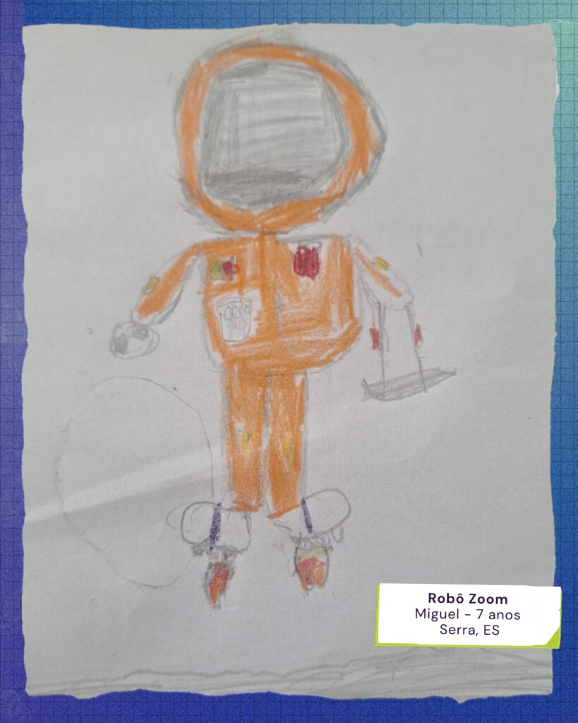 Zoom (Miguel Loubaque, 2º ano): Um robô que combate o sedentarismo e o uso excessivo de telas, reconhecendo crianças que precisam brincar e promovendo atividades lúdicas em praças.